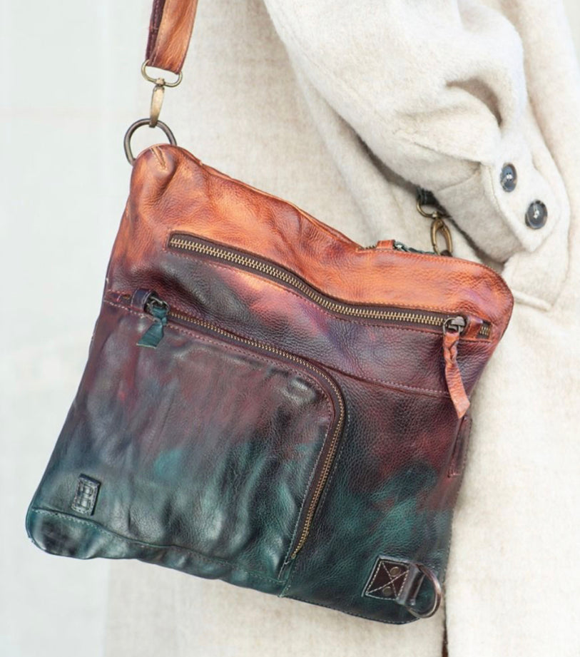 - Chrome free, dip dyed vegetable tanned leather crossbody