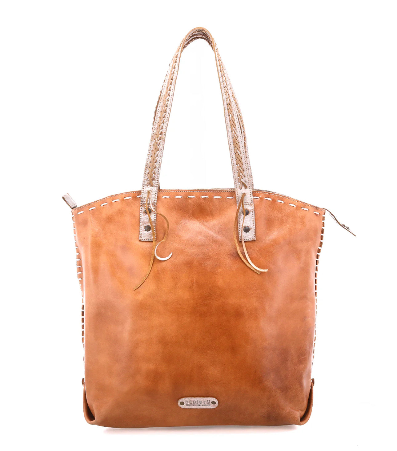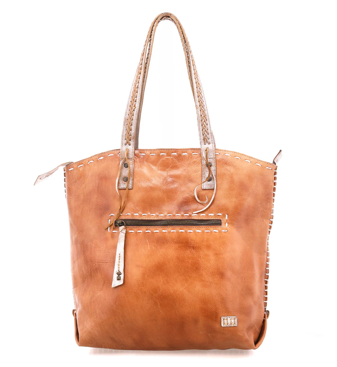 Barra II features decorative woven stitching detail around the edges and handles, adding a handcrafted touch to its classic silhouette. A front zippered pocket and interior compartments—including a center divider, one zip pocket, and two slip pockets—make organization effortless. Finished with organic cotton lining, metal stud accents, a secure zipper and magnetic snap closure, this tote is functional, timeless, and full of character.