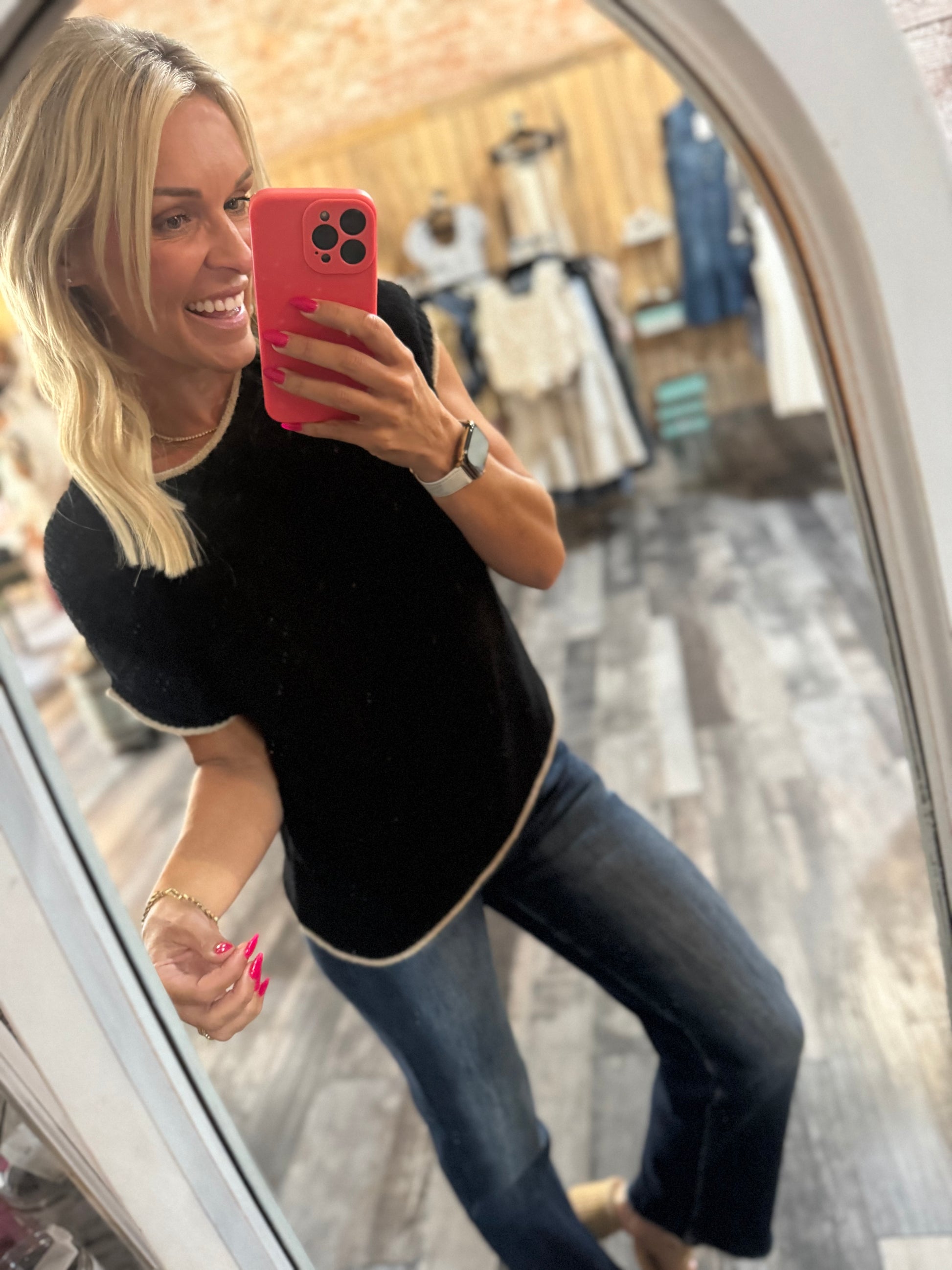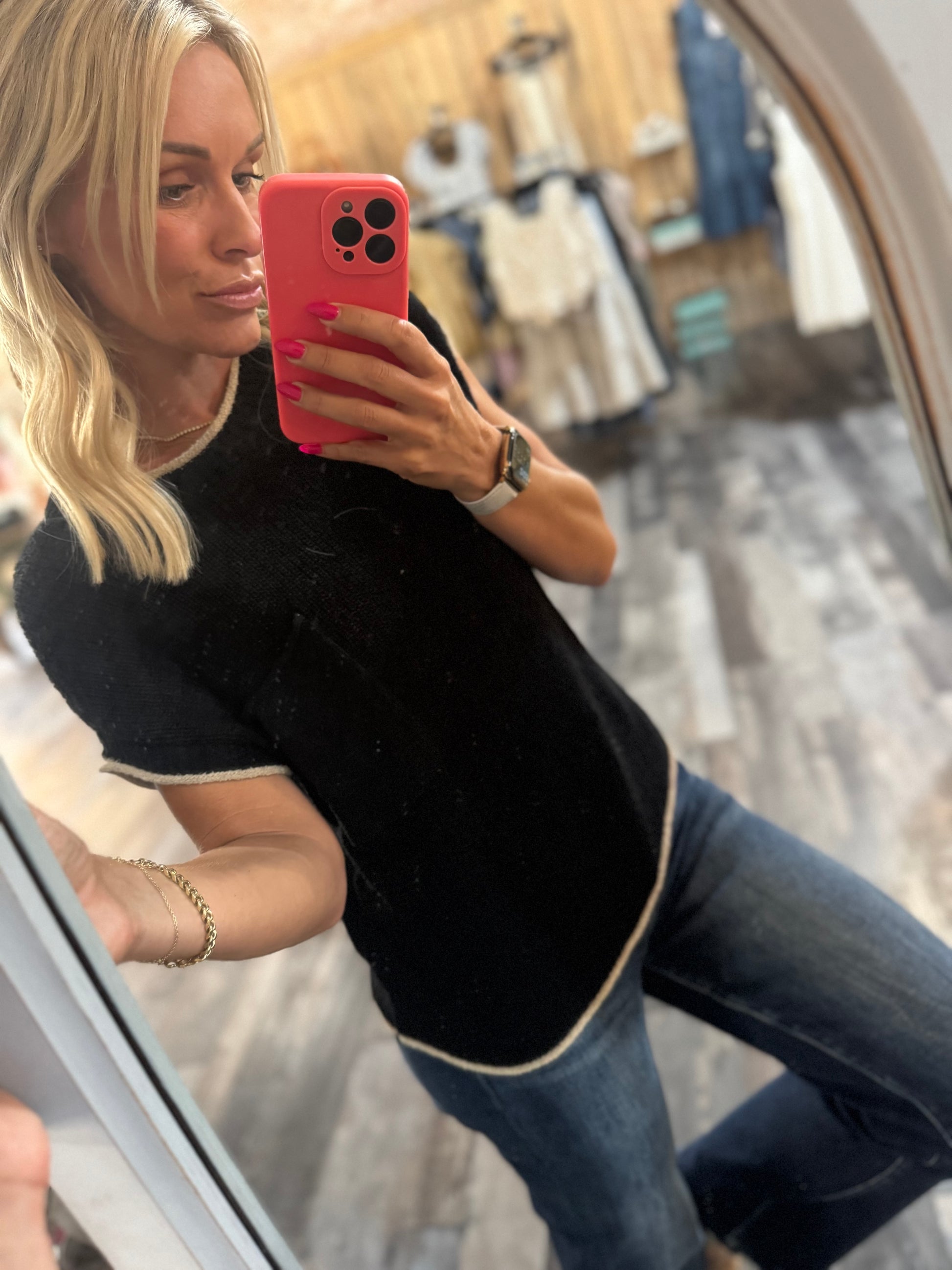 thin sweater, cute front pocket, cap sleeve