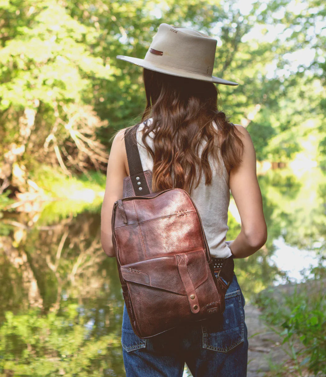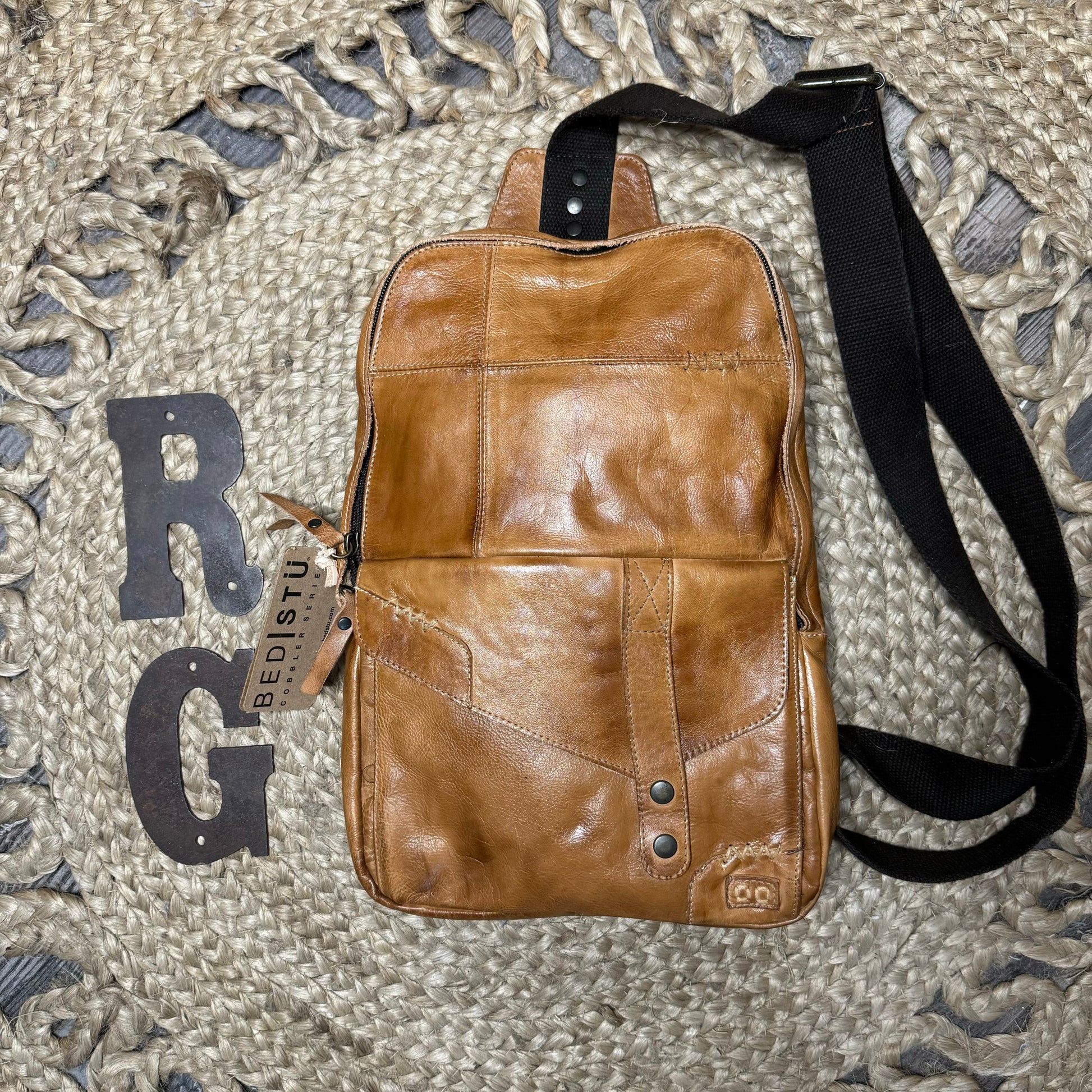 BOSS is a sling bag perfect for anyone, featuring a durable structured frame that serves you just right. An asymmetrical front pocket adds visual interest, while the patchwork-like body enhances its strength and lasting dependability. Topstitched zig-zag designs provide an extra touch of intrigue. Inside, you'll find a designated space to secure your tablet, stylus, pens, and an attached key fob. Function and fashion collide in this one.