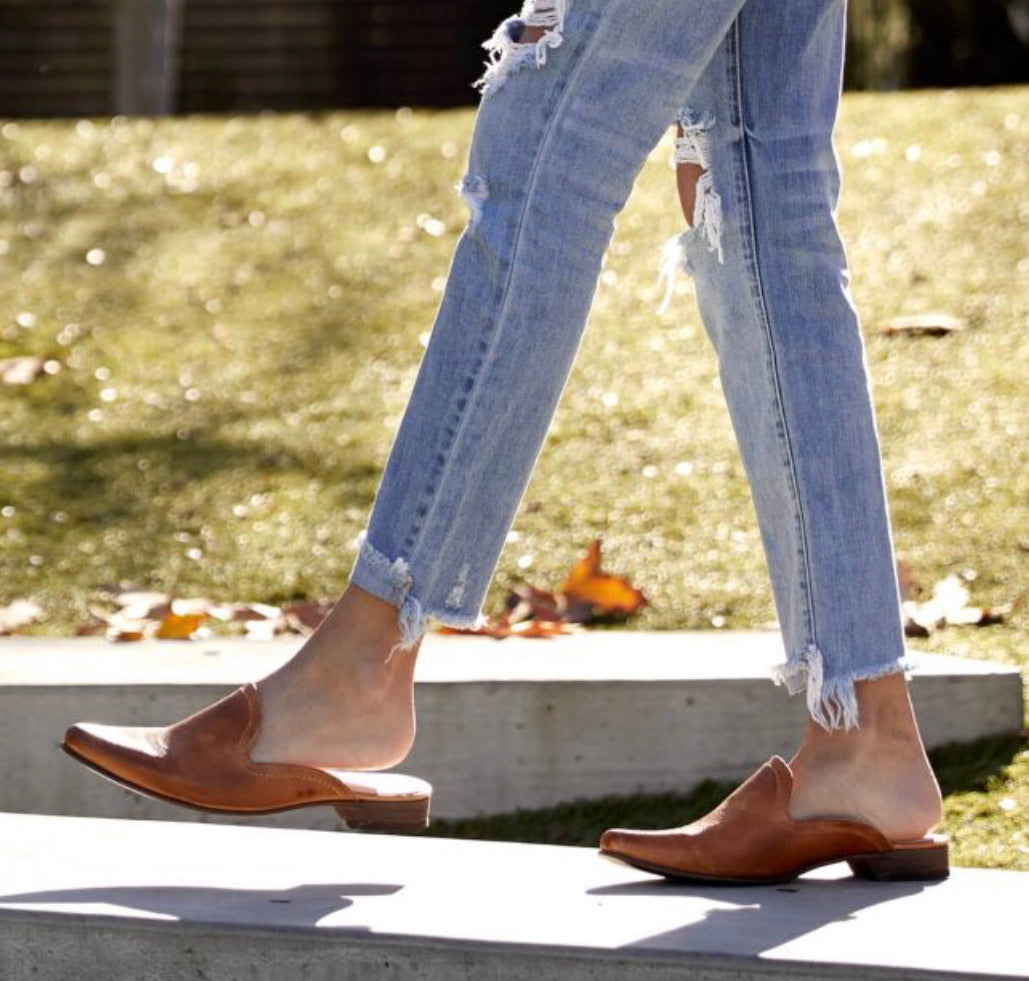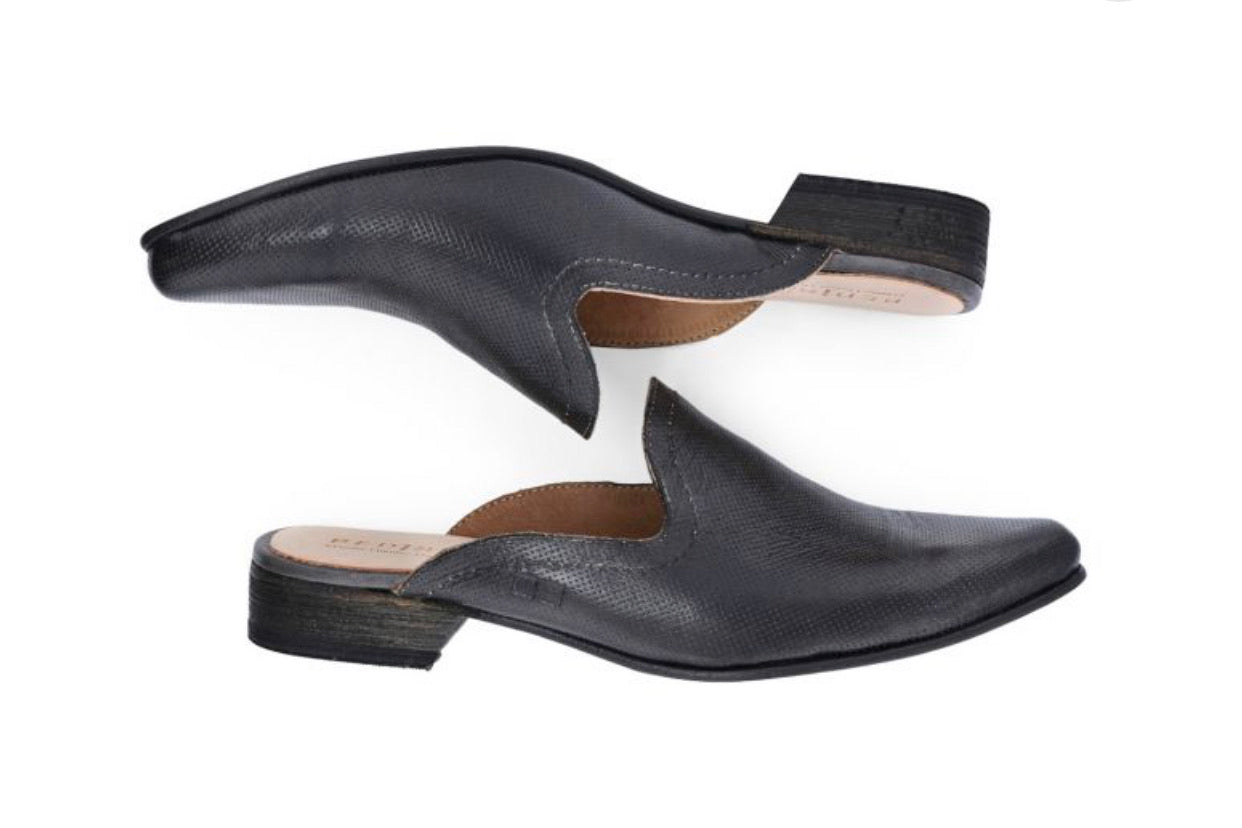 Introducing or newest slide-on mule, BRENDA. This modern take on a classic style is what everyone is lusting for this season! Handcrafted using natural vegetable tanned leather and accentuated with fine perforation details and a pointed toe, this mule is comfortable and elegant to dress up or down. Pair these streamlined beauties with distressed denim, tailored trousers or a flowy dress.