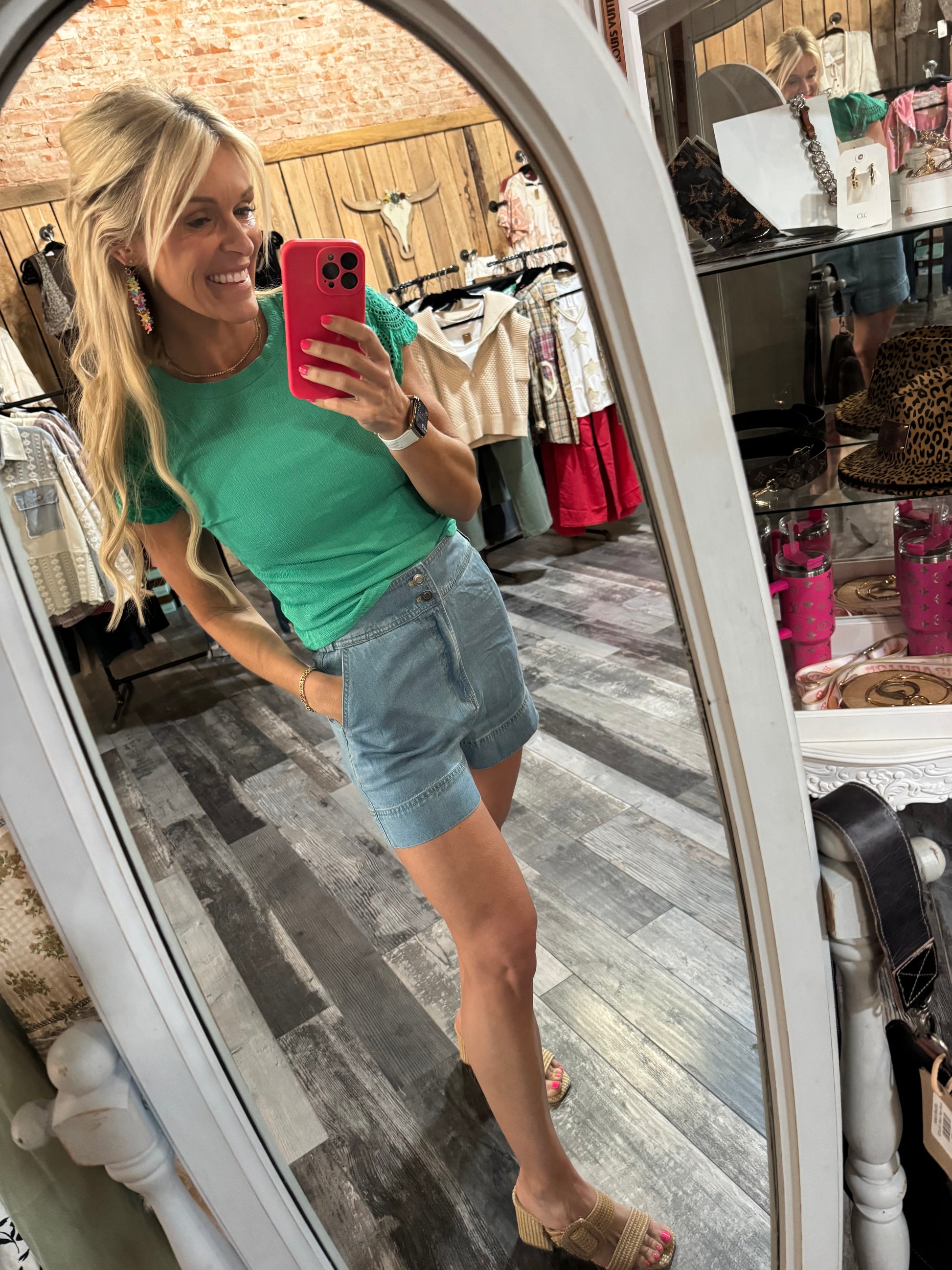 fitted top, with cute ruffle sleeve, fits lil smaller