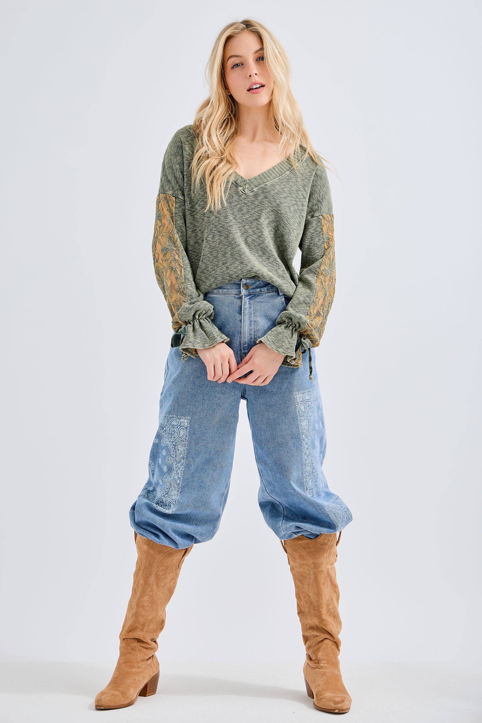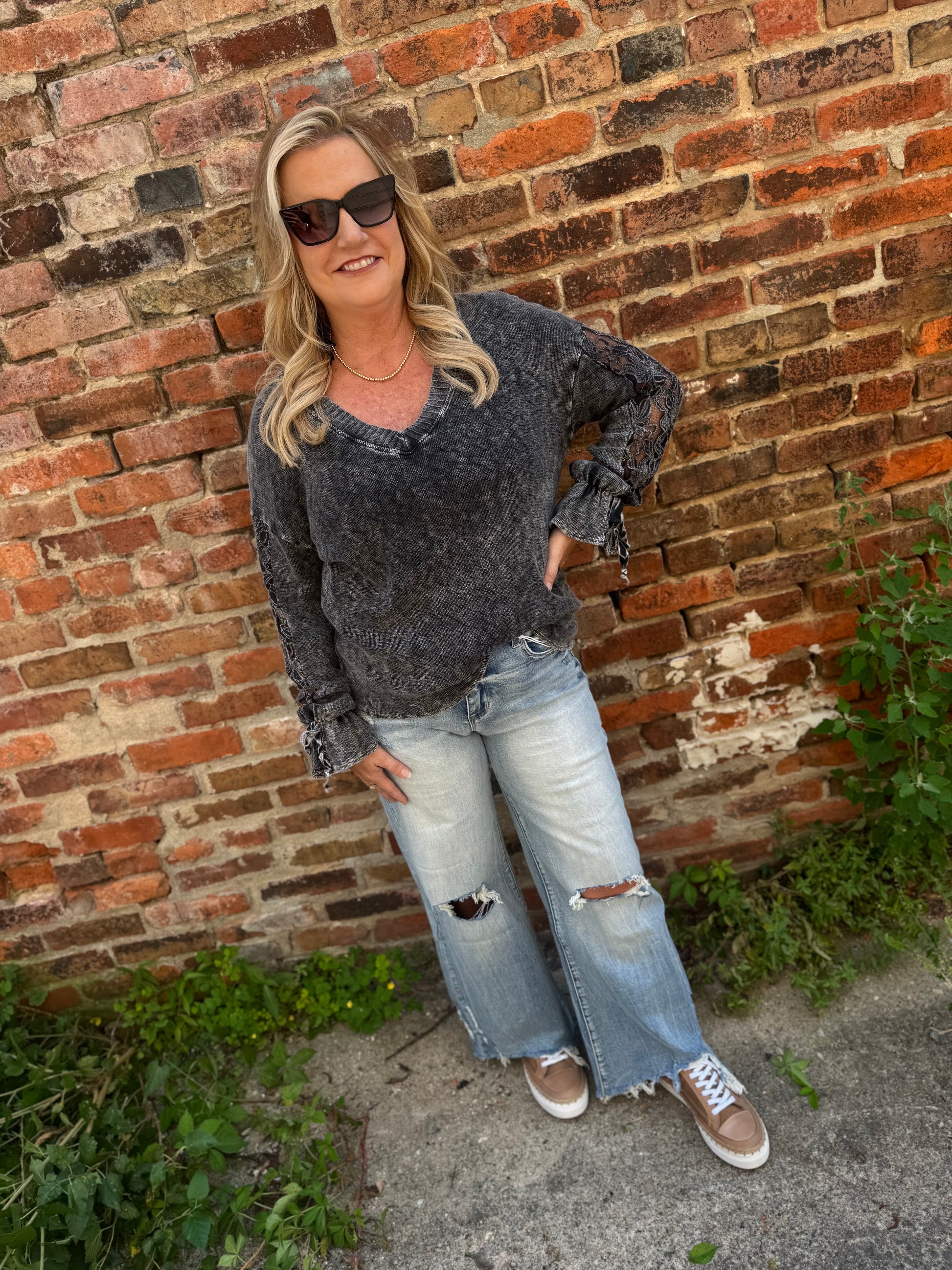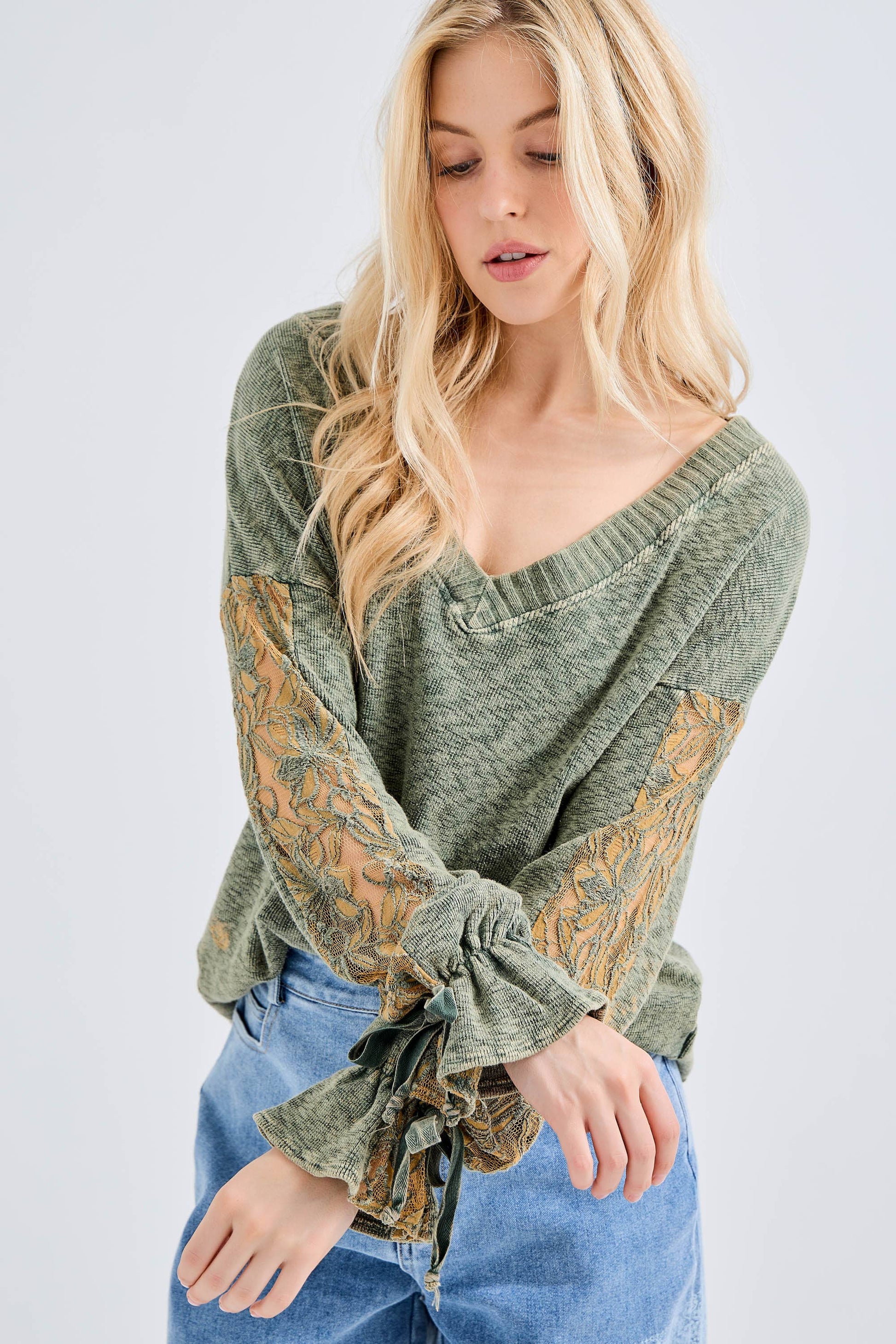 MineralWash lace bow tie sleeve Melangie sweater blouse