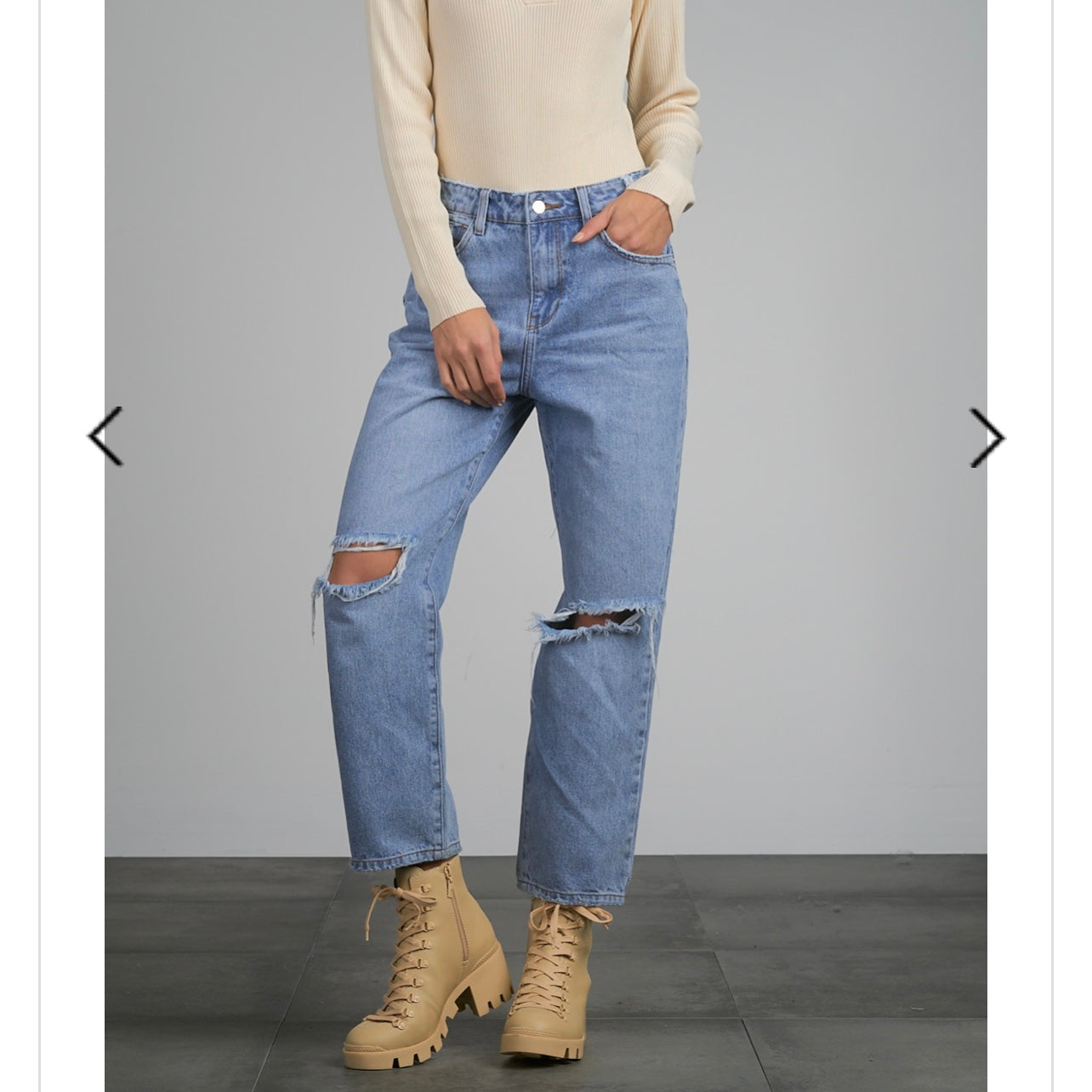 High waisted mom jean with fray bottoms