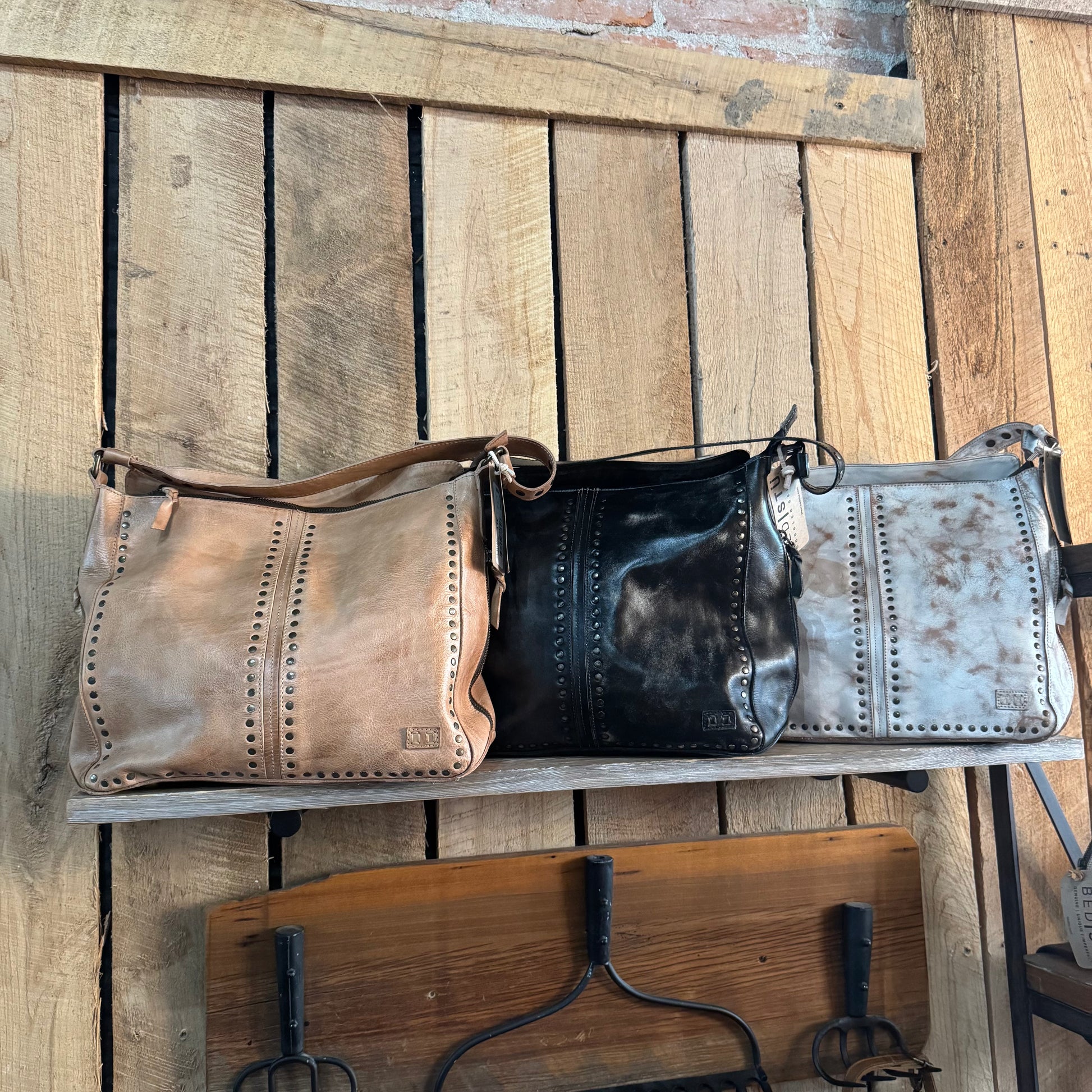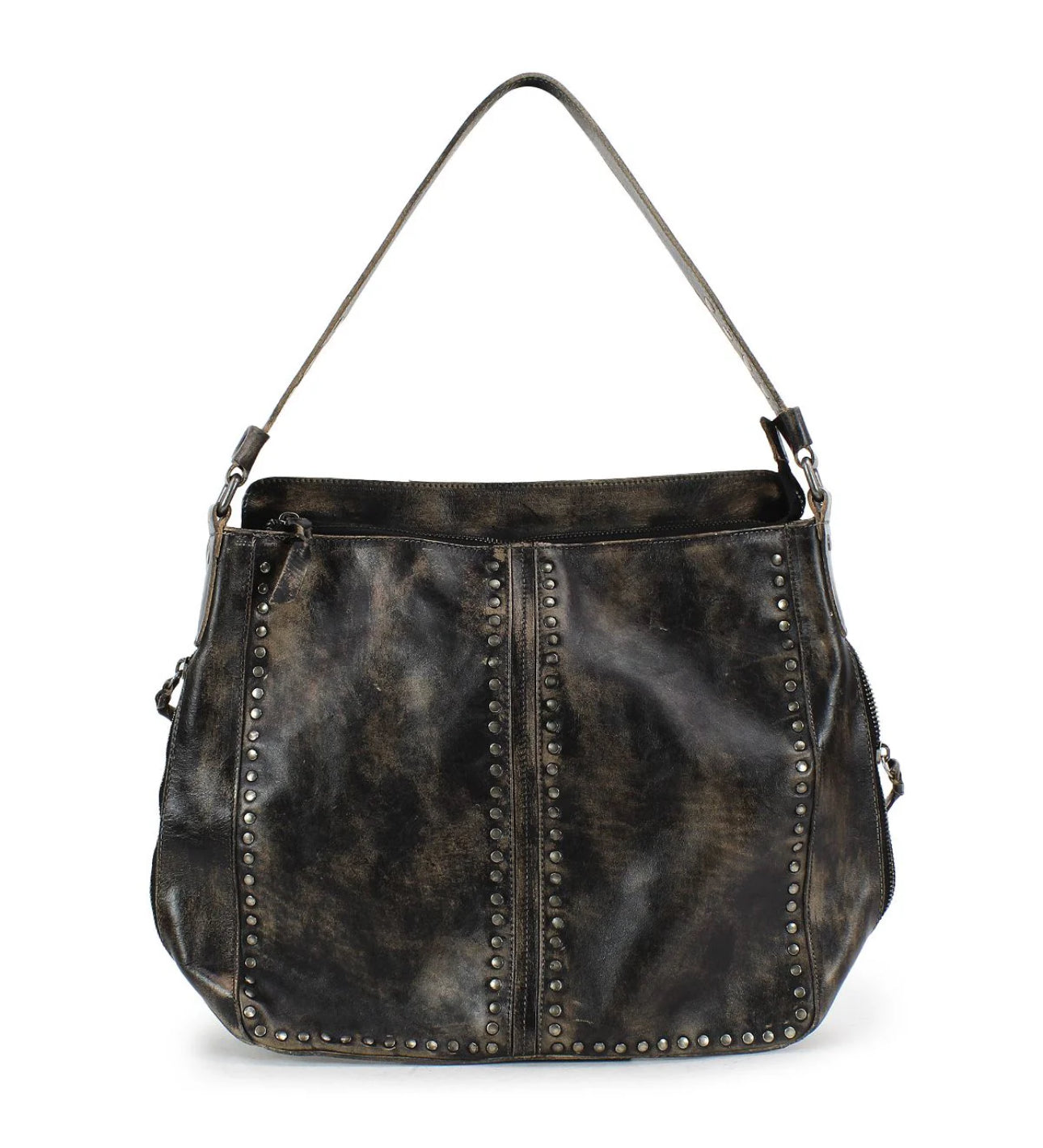 Packet LTC is a shoulder tote bag designed with both style and security in mind. Adorned with metal studs for a touch of edge, this bag features a fold-over flap that covers the zipper, ensuring your belongings stay safe. An outer zipped pocket adds extra convenience, making Packet LTC perfect for everyday use or as your go-to travel tote. Crafted from quality leather, it offers both durability and a bold look.