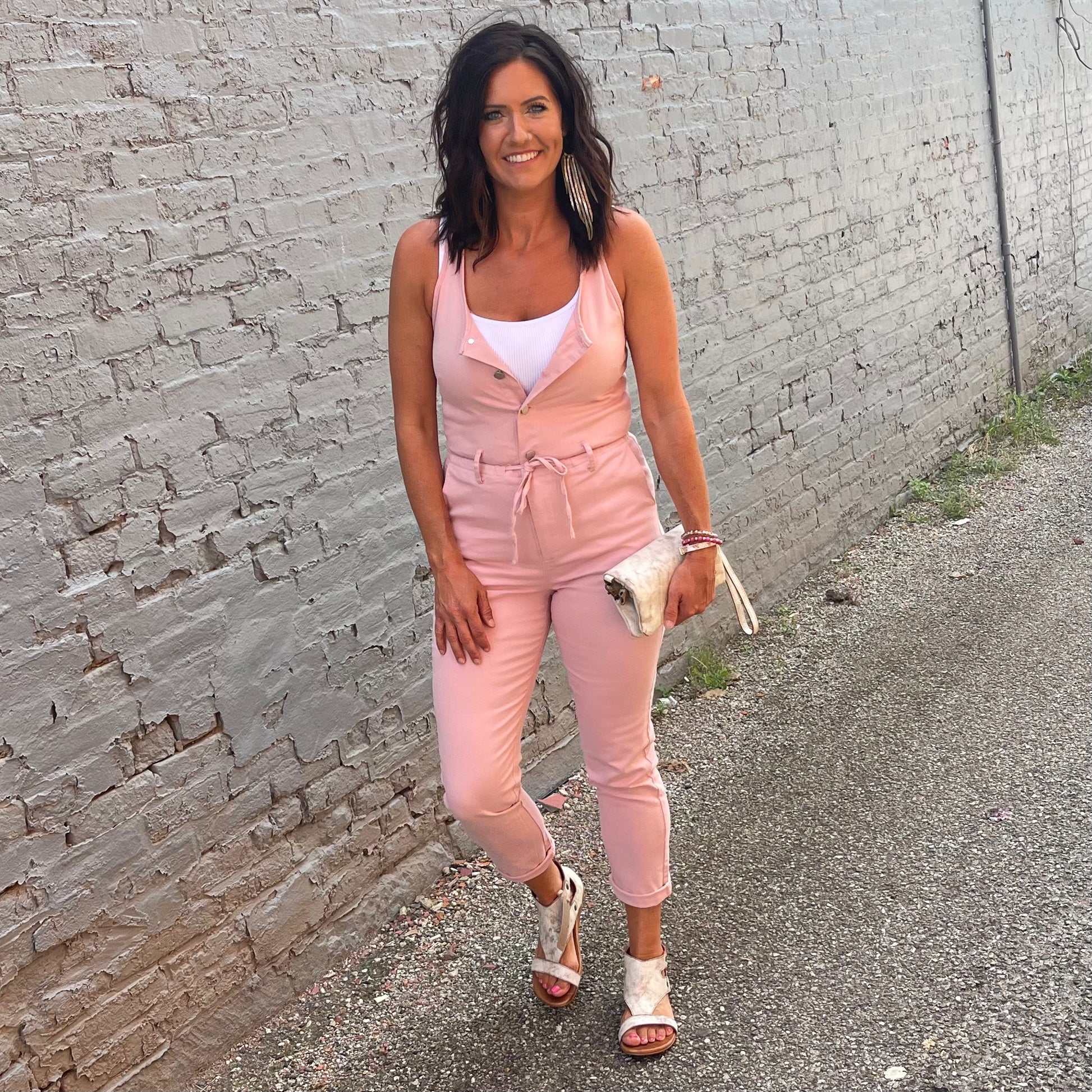 pink jumpsuit with drawstring
