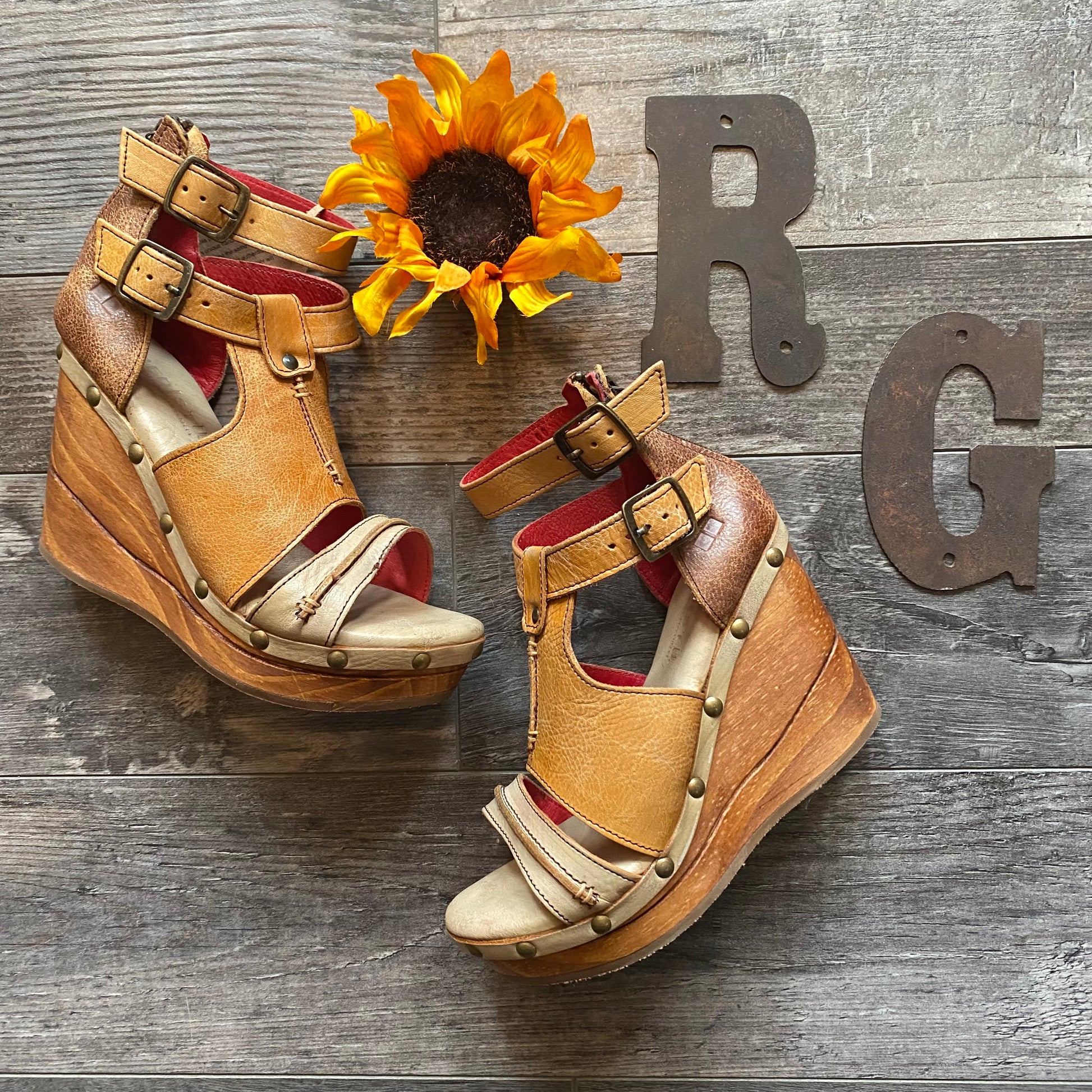 Your attention please: PRINCESS is entering the building, all eyes on her! Y’all meet PRINCESS, an ultrafeminine strappy wood platform wedge, made for those who love to be the center of attention. A beautiful, sustainable wooden wedge, strappy upper with butted seams, and flirty double ankle buckle. Don’t forget about the brass metal studs and rear zip for ease of on and off. Stand tall, confident, and enchanting among your on-lookers in PRINCESS.