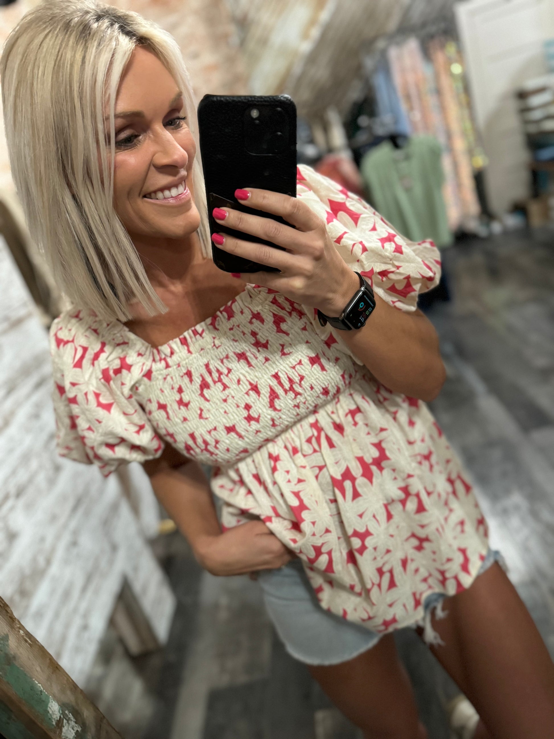 spring vibes with the floral print, puff sleeve, baby doll fit top