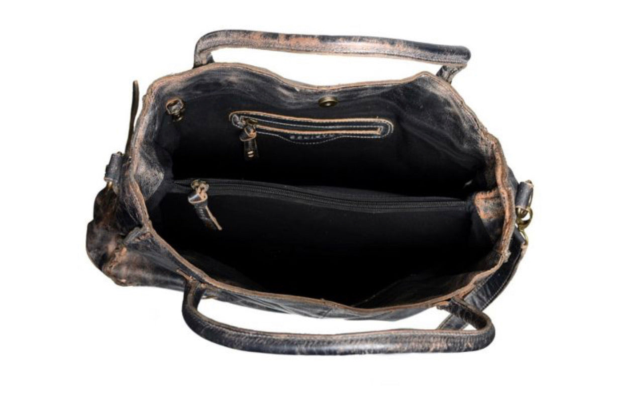 In this case, bigger is better. ROCKAWAY in black lux is big on looks, even better in function. Two strong handles support this voluptuous bag, detailed with crisscross tie details and a crackle effect finish. An optional shoulder strap can make this into a cross body as well, so carry confidently with ROCKAWAY.