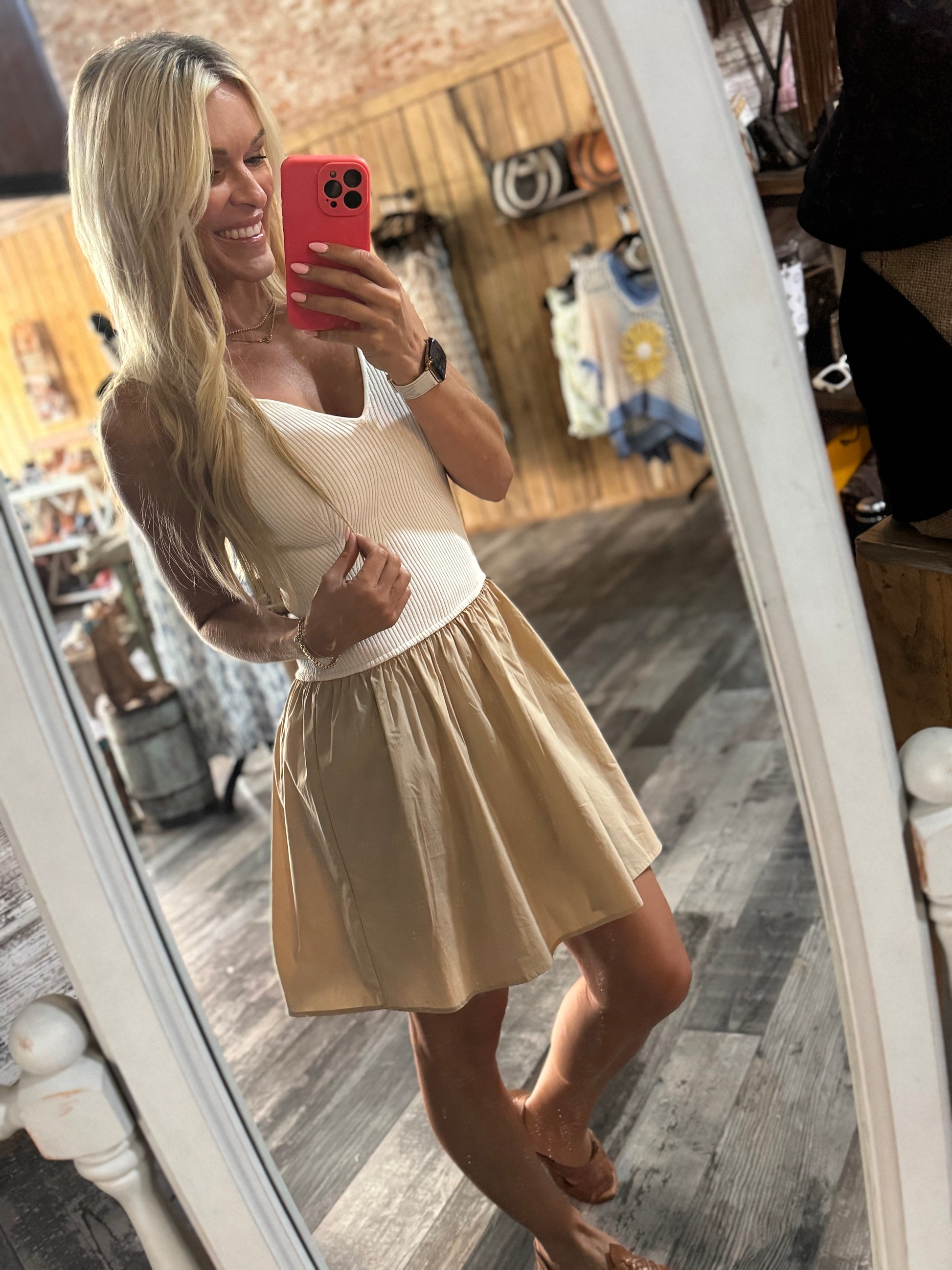 ribbed tank top, stretchy top, flowy bottom, high quality by Elan