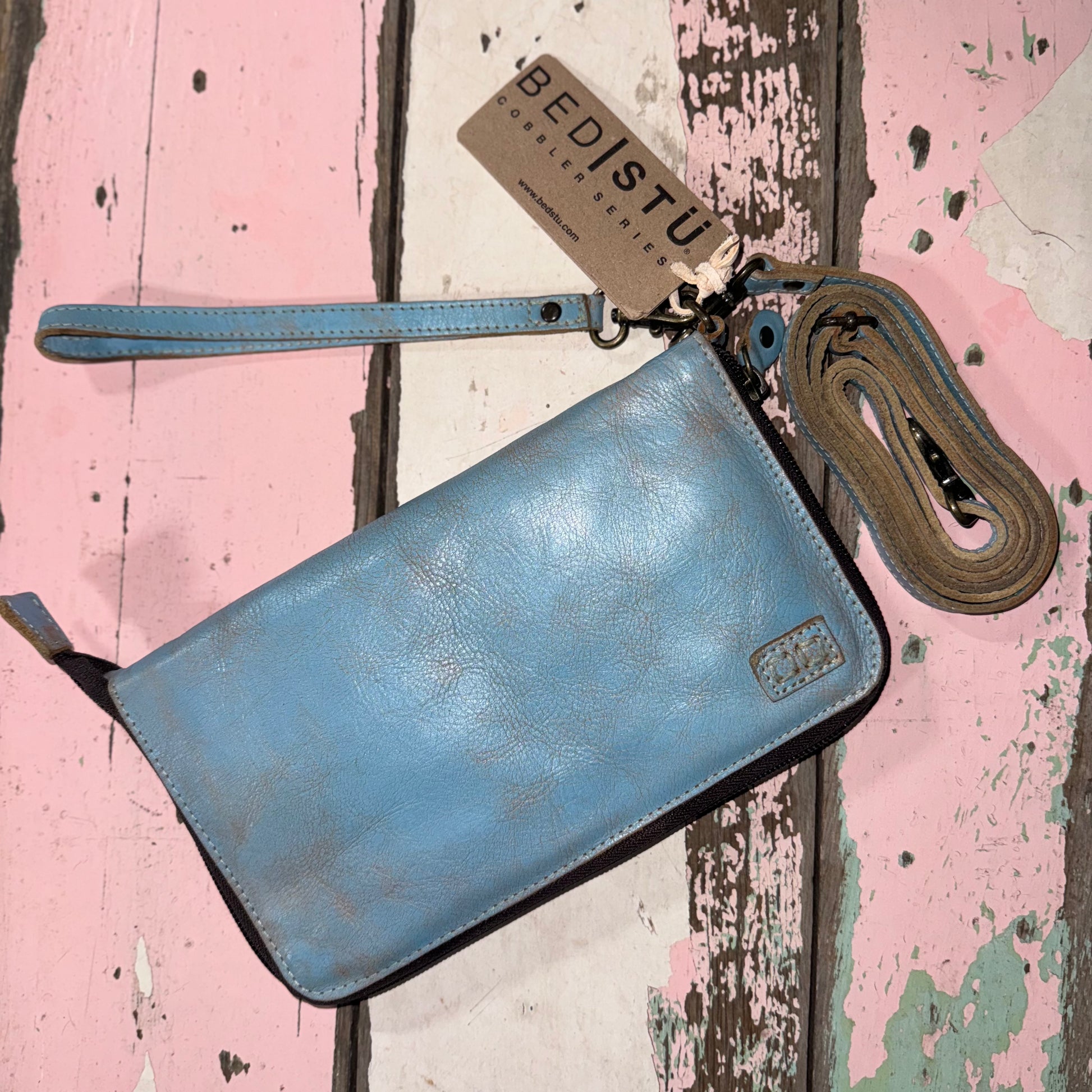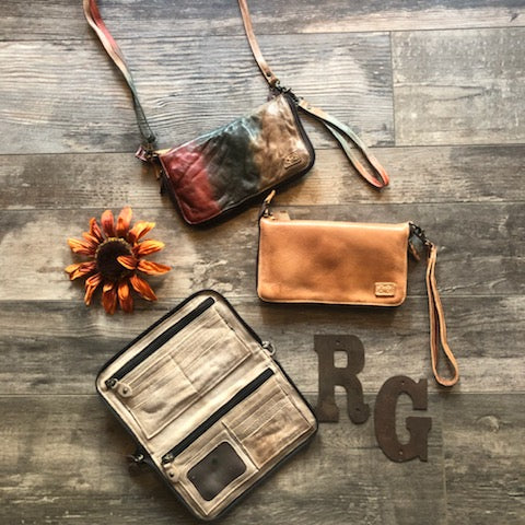 This everyday wallet is a three in one (wallet, clutch or crossbody). The Templeton wallet has a zip closure on 3 of 4 sides with leather pulls that can open flat for easy access. It has 2 zip pockets inside, mesh insert for ID and 8 credit card slots.