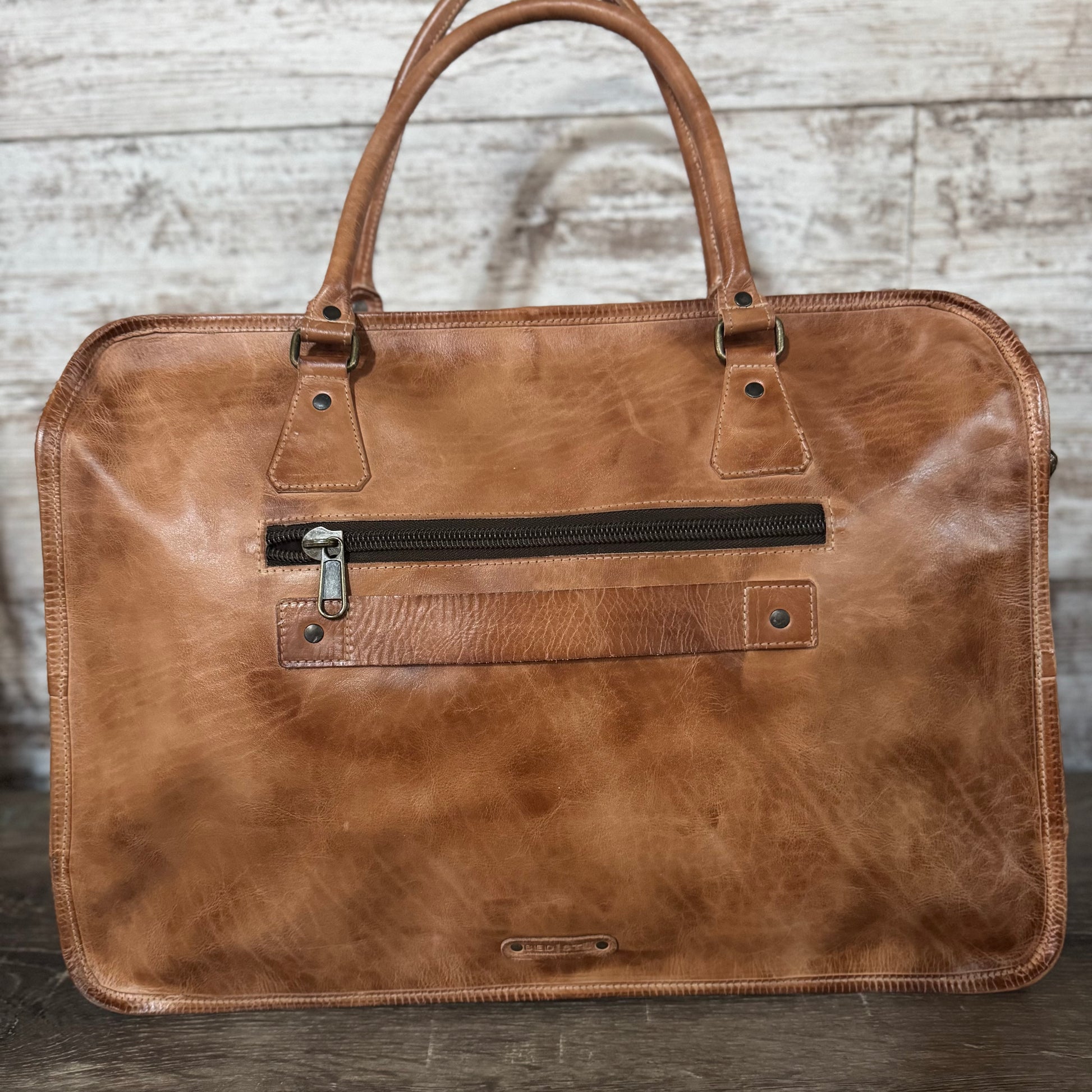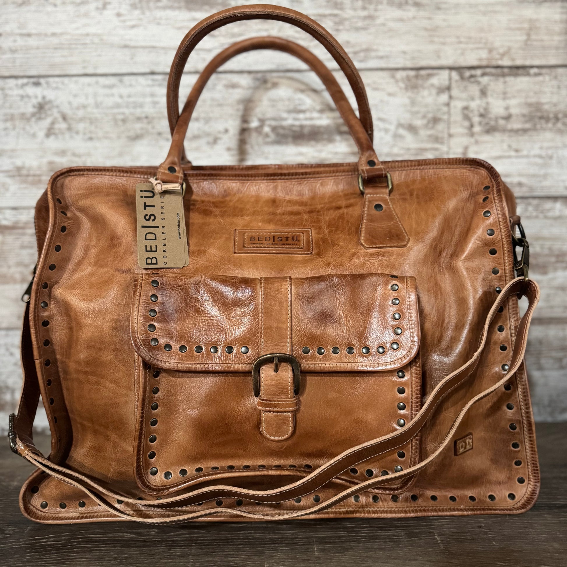 Loaf is the ultimate large weekender duffle bag designed for your next adventure. Crafted from quality leather, this bag features a smaller outside pocket with a stylish buckle detail and metal studs outlining the borders for a rugged yet refined look. Perfectly sized for a carry-on or long weekend getaway.