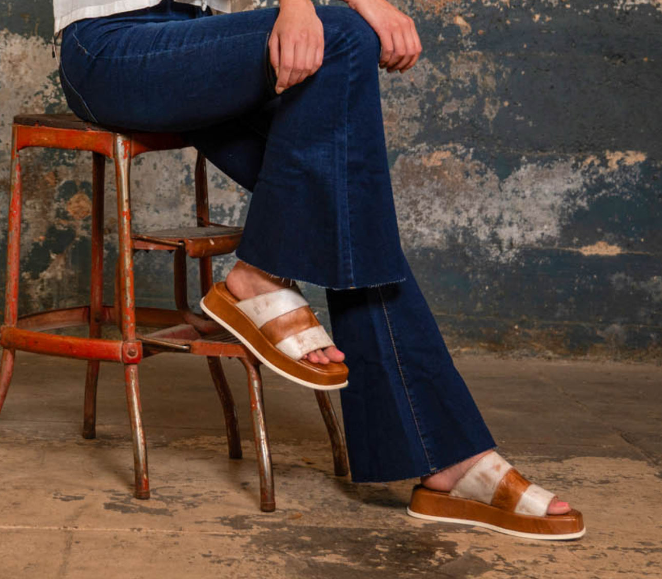 bedstu slide, leather handmade, runs large. We suggest sizing down 1 size
