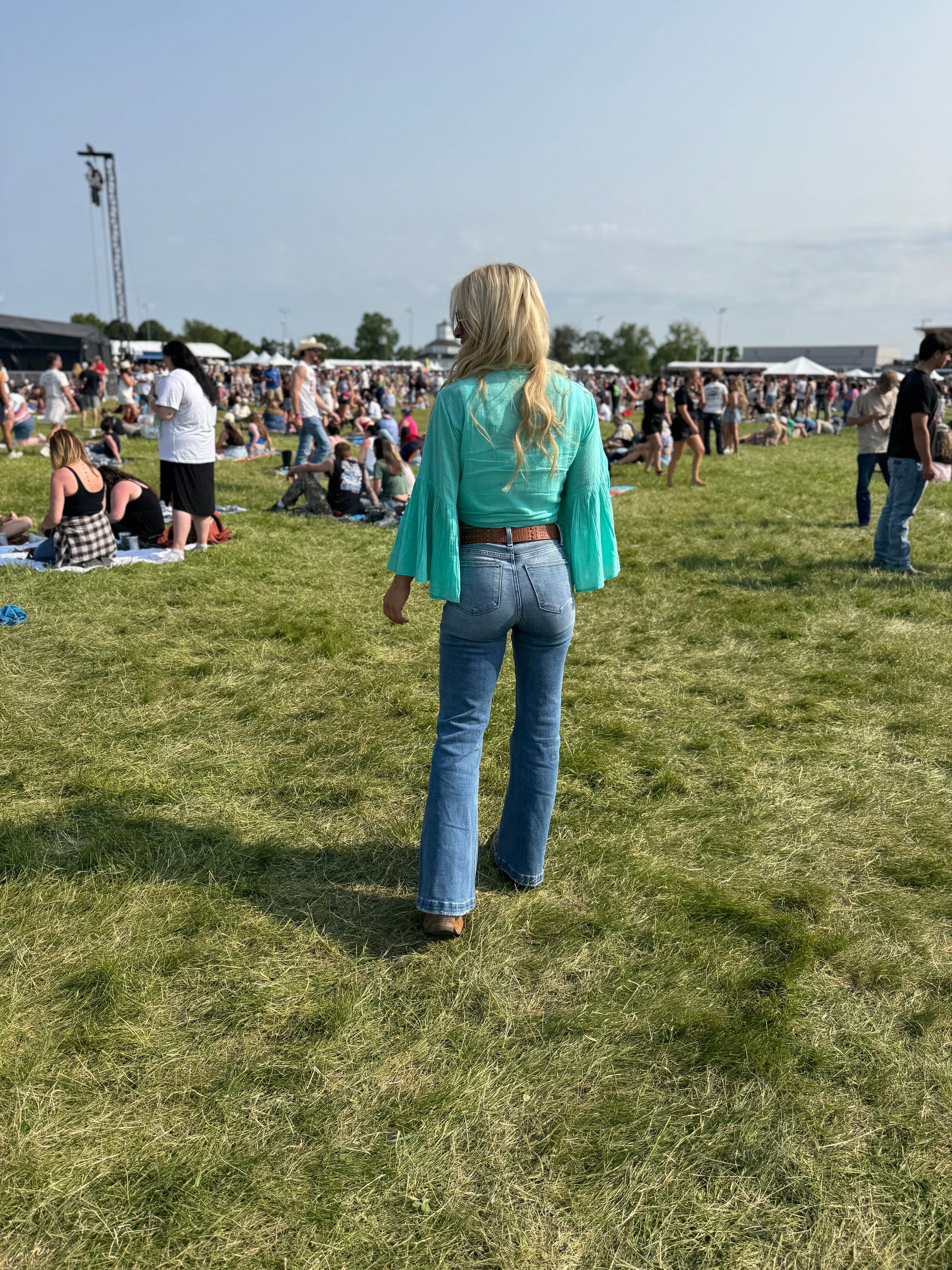 petite fit flare denim, great for my shorter gals, but also if you want to rock the flares with flats. Great stretch. 10.75" rise, 31" inseam