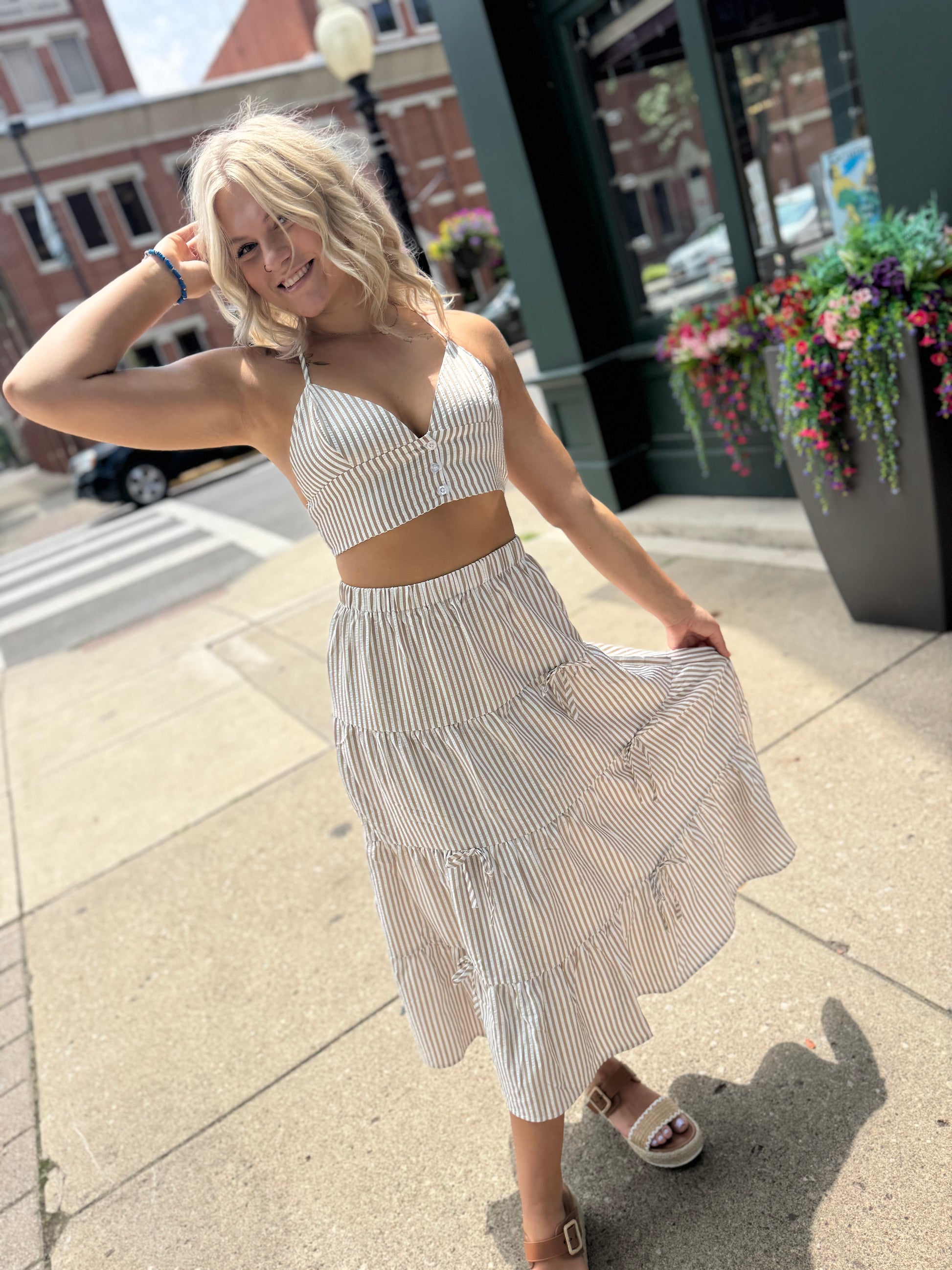 elastic waist, stripe, maxi skirt, brand fits true to size