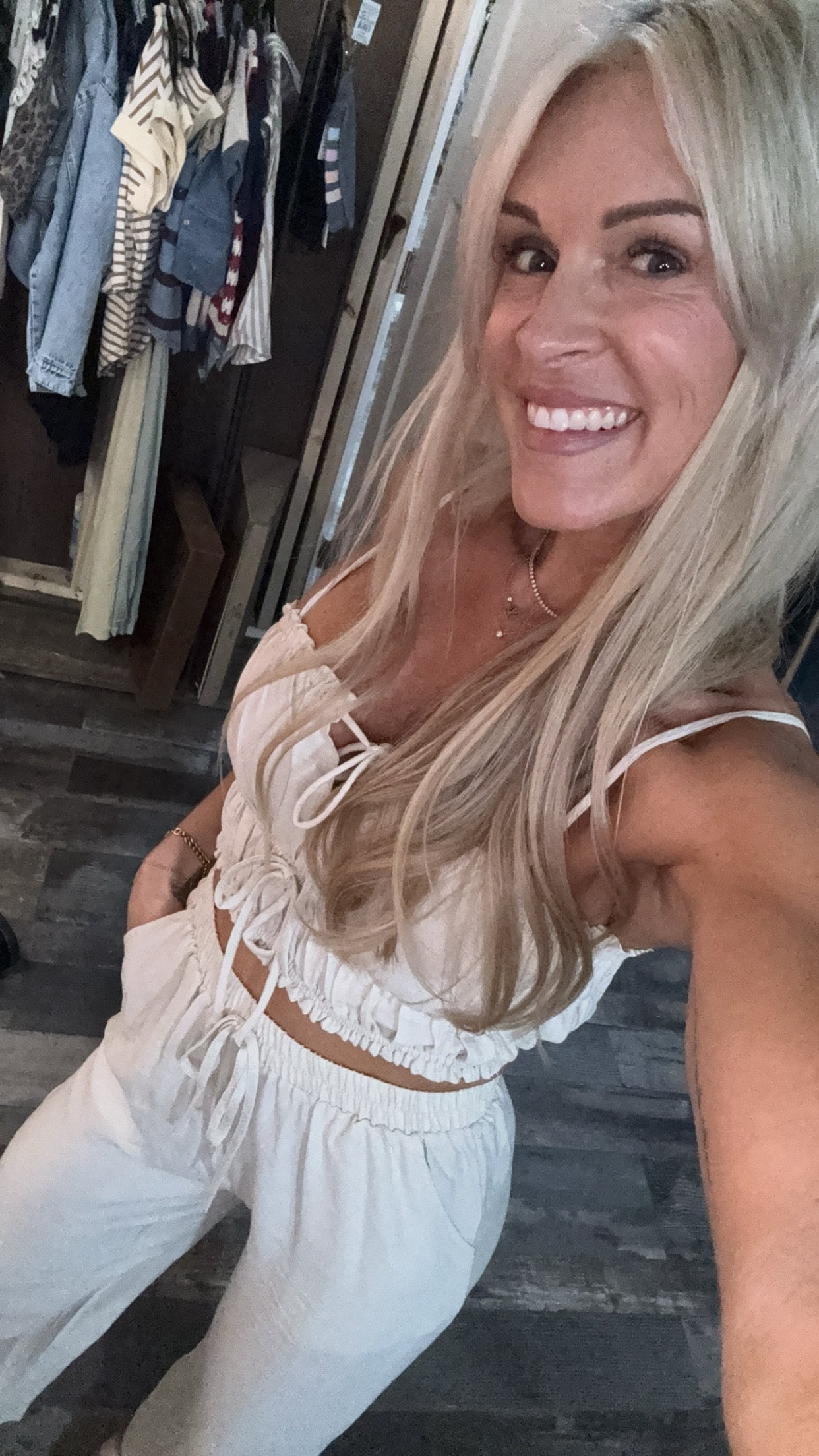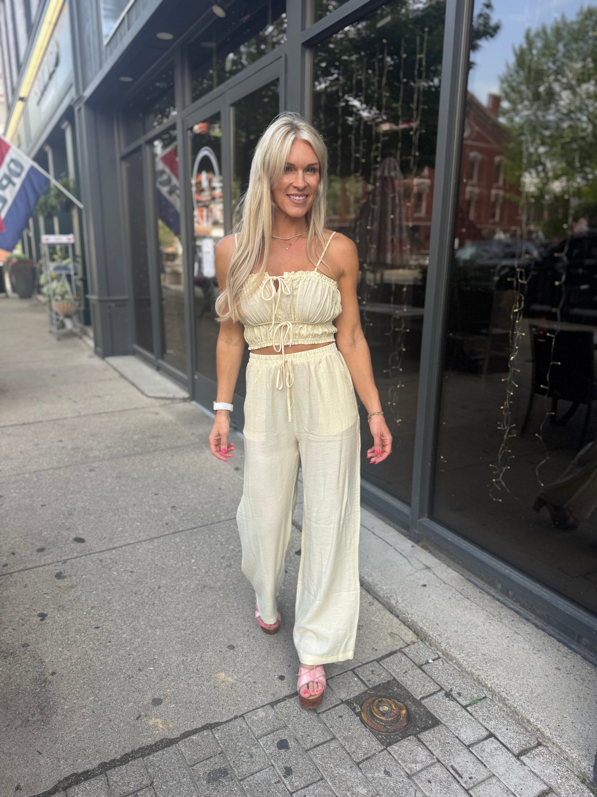 linen set, elastic top & bottoms. wide leg, fits true to size
