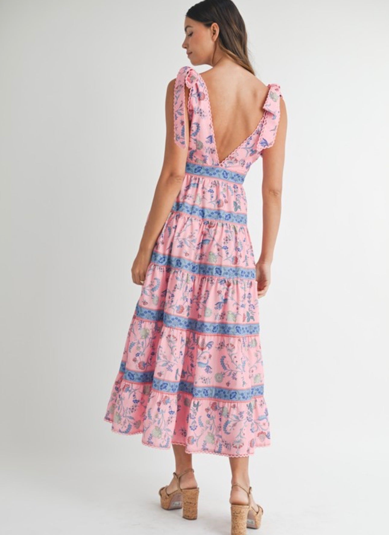 make a statement in this pink pattern maxi dress, high quality fabric, zip up back