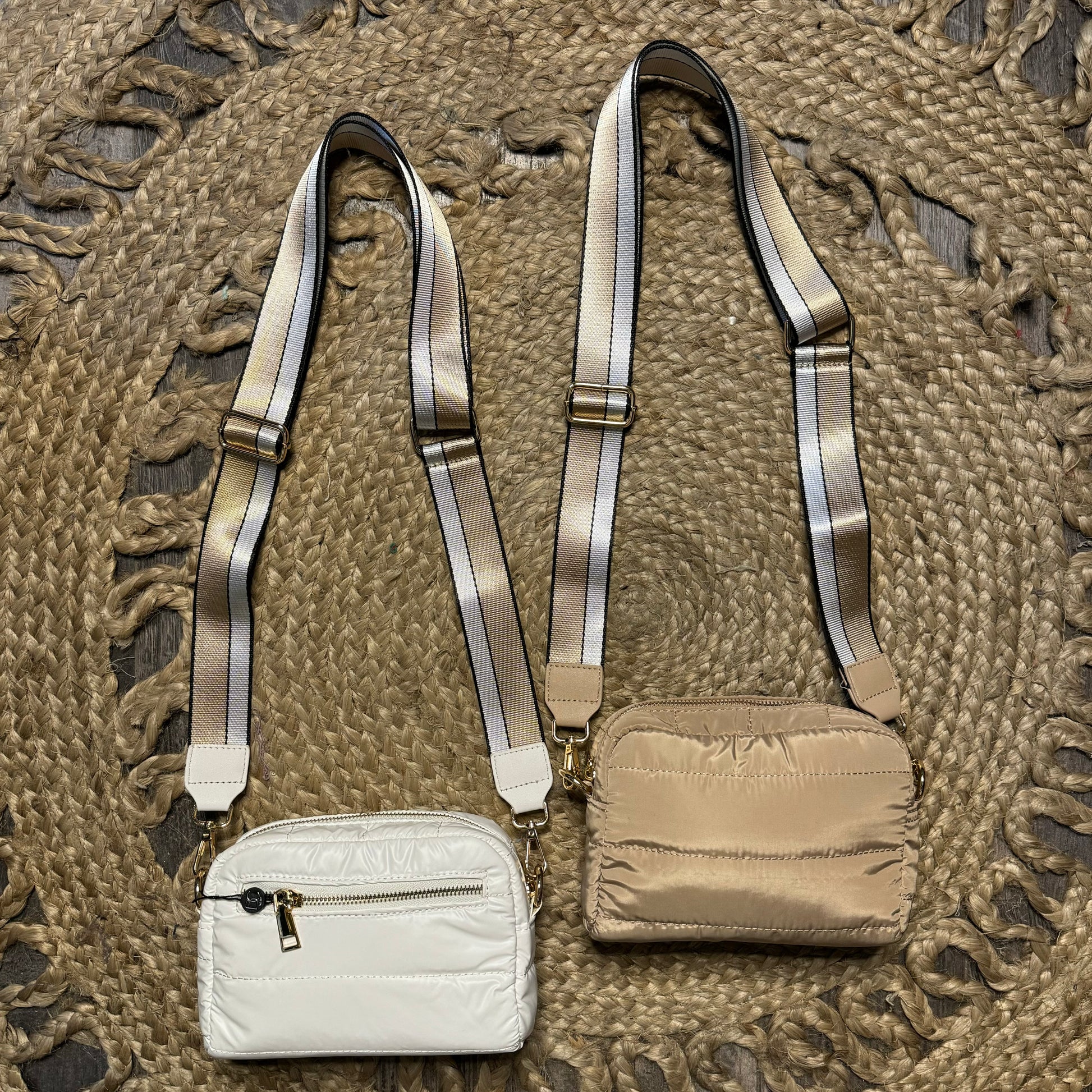 Crossbody puffer, with guitar strap, outside locked & inside zipper pocket