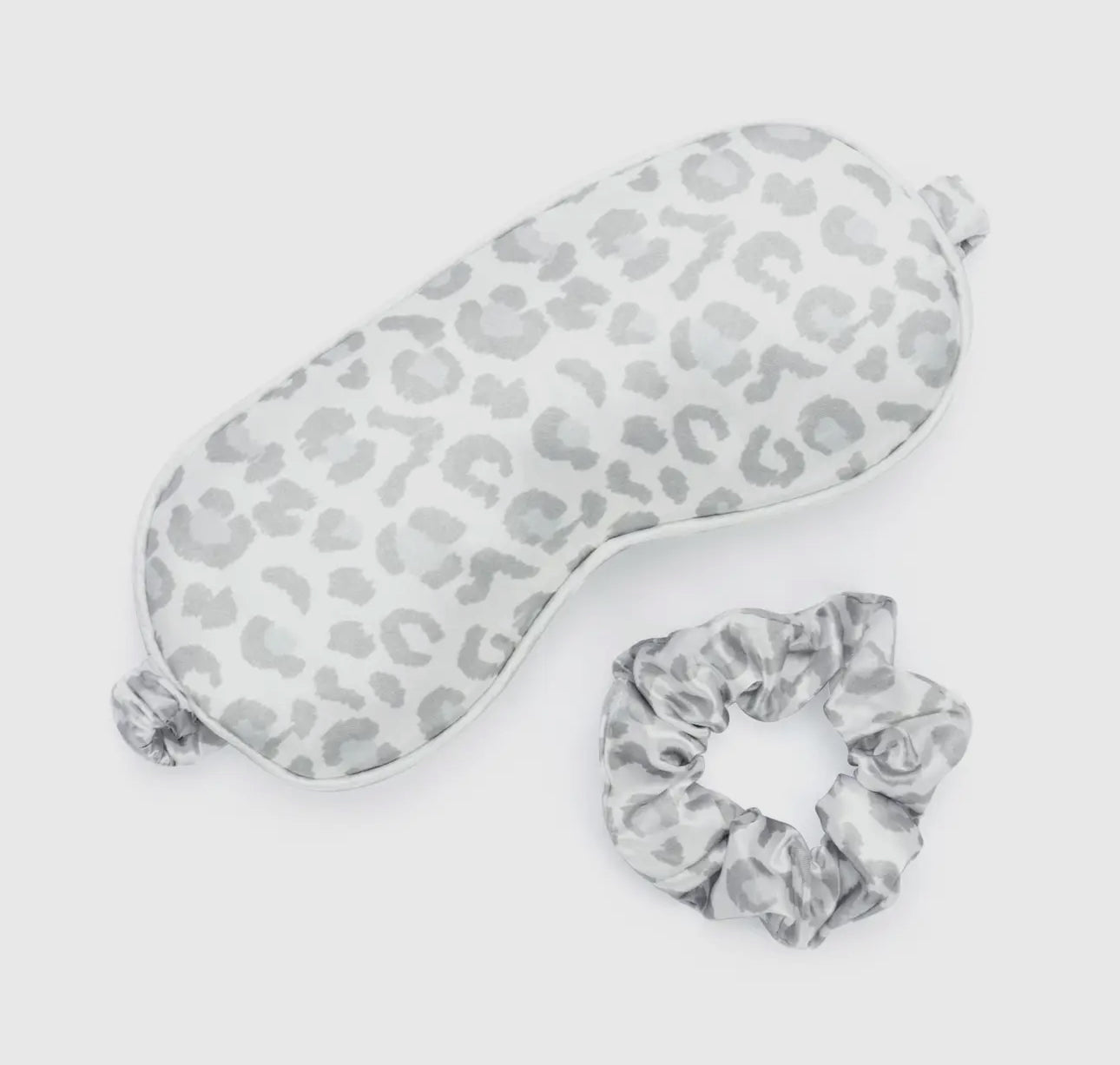 grey & White leopard print, face mask with matching silk scrunchie