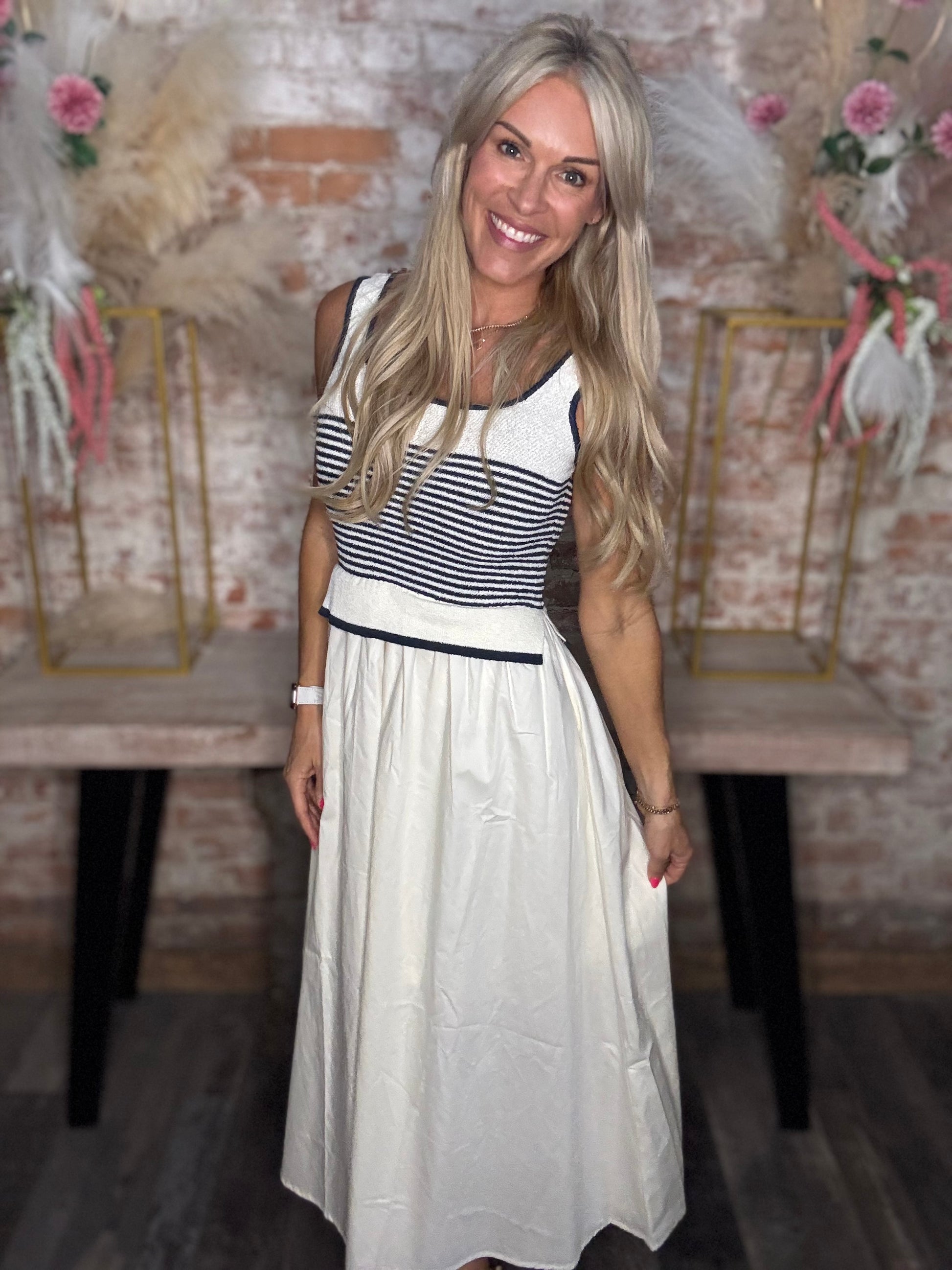 stripe sweater tank, with flowy skirt, 1 piece and so cute, fits true to size